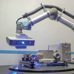 The particularly powerful projector of the PrimeScan allows for the scanning of glossy and dark surfaces without pre-treatment, while the scanner’s integrated laser pointers support the easy positioning of the measuring object. Selected robots and accessories enable both automated measurement and easy data acquisition within larger volumes.