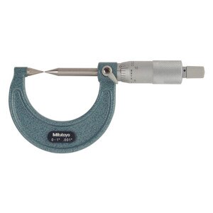 Mitutoyo 112-237 Mechanical Point Micrometer is equipped with a Pointed Anvil and Spindle for measuring the web thickness of drills, small grooves, keyways and other hard to reach dimensions. Includes a Ratchet Stop for constant force and Carbide tip. This model has 30 degree measuring points and a measuring range of 0-1".Specifications