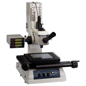 Mitutoyo MF-A1010D 64PKA090A Measuring Microscope 4x4"-100x100mm XY 30x magnification LED & Monocular Tube - expandability, such as when used in combination with Mitutoyo's vision unit to boost its performance or data management on a PC, promises further improved measuring efficiency. Features include observation with a clear and flare-less erect image and a wide field of view. Measuring accuracy that is the highest in its class (and conforms to JIS B 7153). The reflected and transmitted illumination unit is selectable from a high-intensity LED or halogen bulb. The variable aperture diaphragm allows observation measurement while suppressing light diffraction. The quick-release mechanism is useful for moving the stage quickly when measuring workpieces that are large in size or quantity. Has a coarse, fine feed handle that is standard on both sides and allow precise focus and observation measurement regardless of handedness. Includes a high-magnification eyepiece that can observe up to 2000x. This model has a 4x4"-100x100mm XY Stage Travel Range, 11x11" 280x280mm XY Stage Top Size. This model has 30x magnification with LED illumination and Monocular Tube. Readout type is 2-axis.Specifications