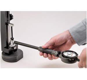 The Starrett 3089-RS36B Bore Gage Setter has a 0-6" setting capacity. When using a bore gage, set gage to nominal dimension. Total part tolerance must be within range of the gage itself.Two Straight Jaws are Included, parallel to 0.5 microns (0.000020")
